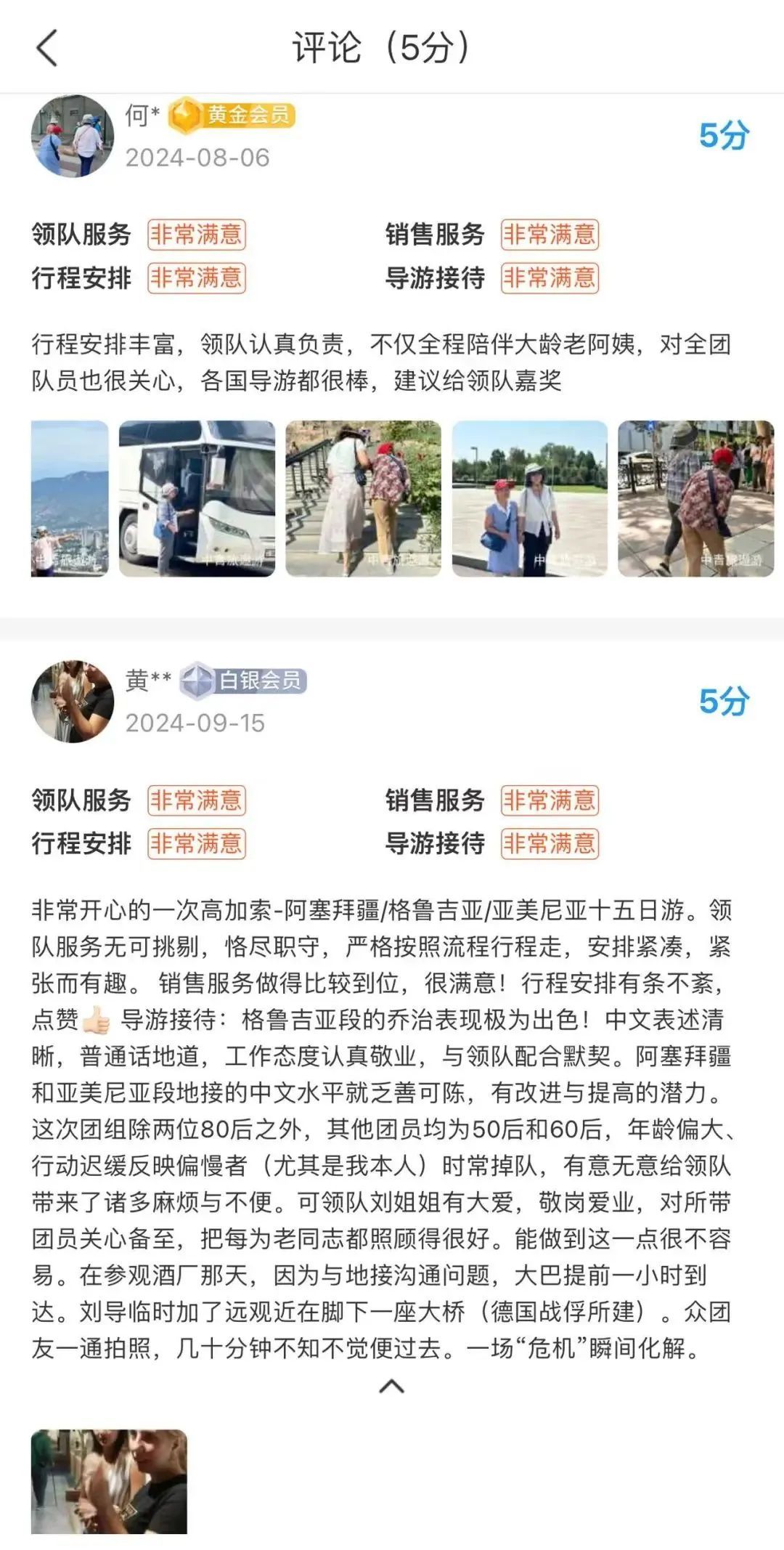“芳华旅行家”系列产品游客对于旅行服务的评价/记者截图