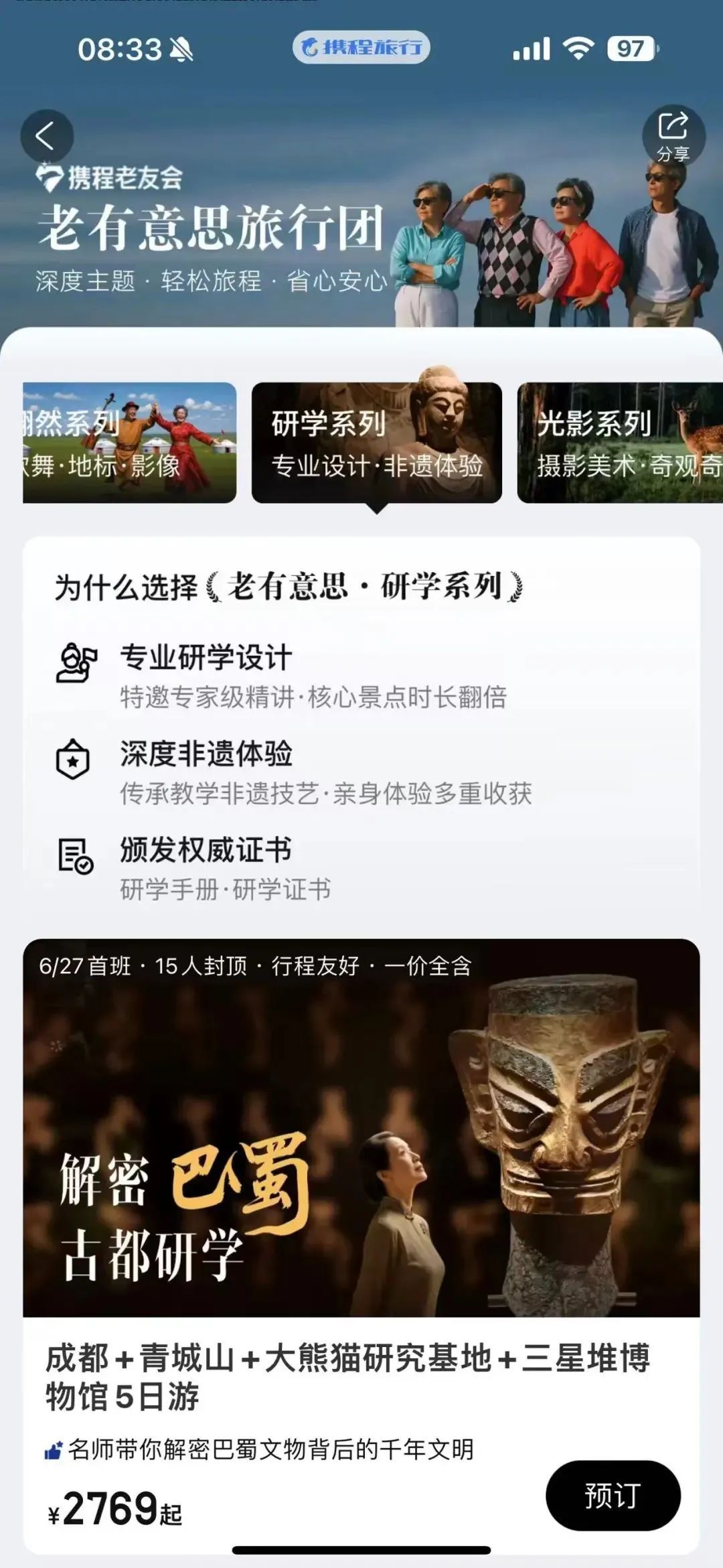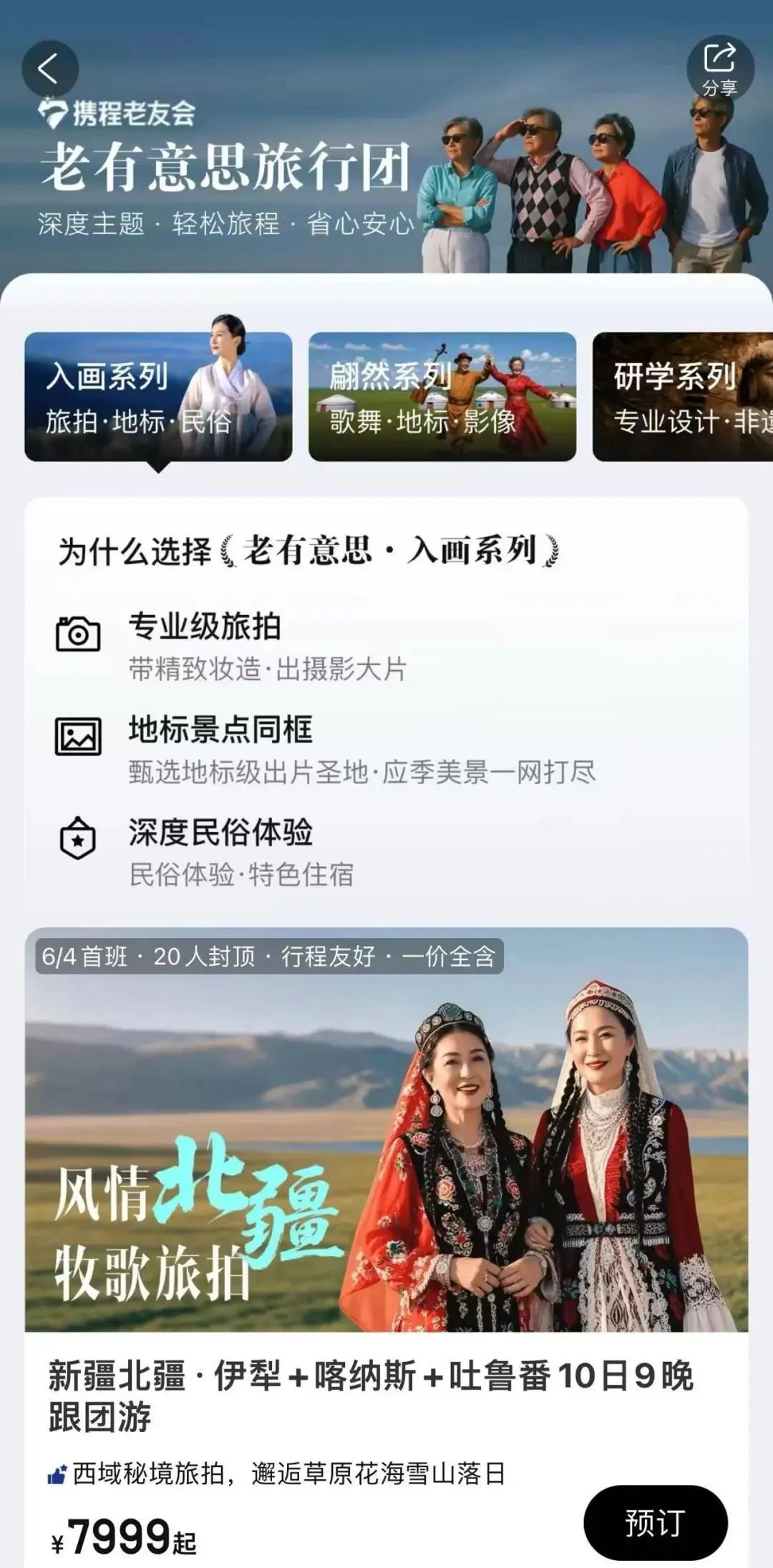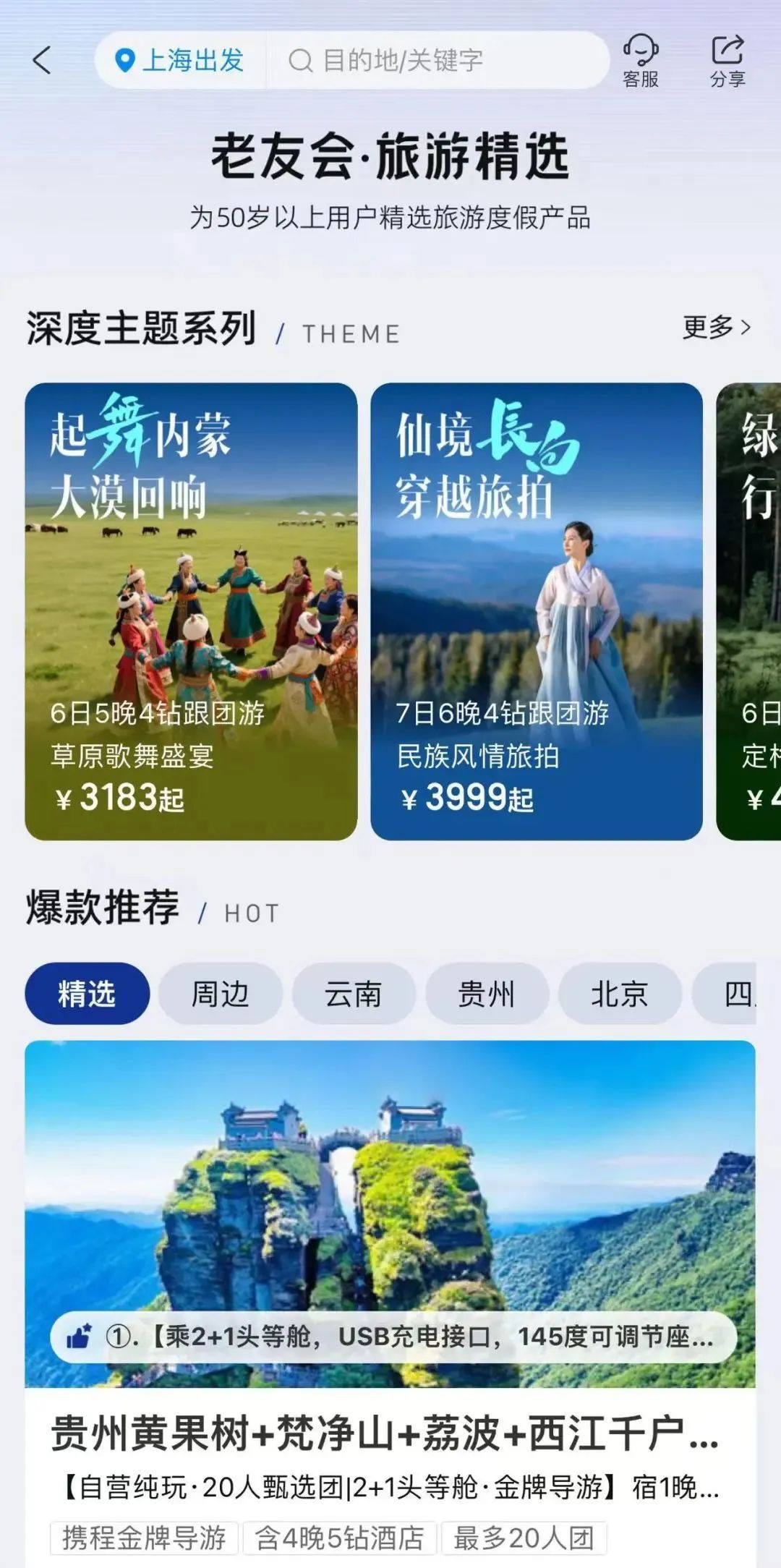 携程老友会推出多种针对银发用户的旅游产品/记者截图
