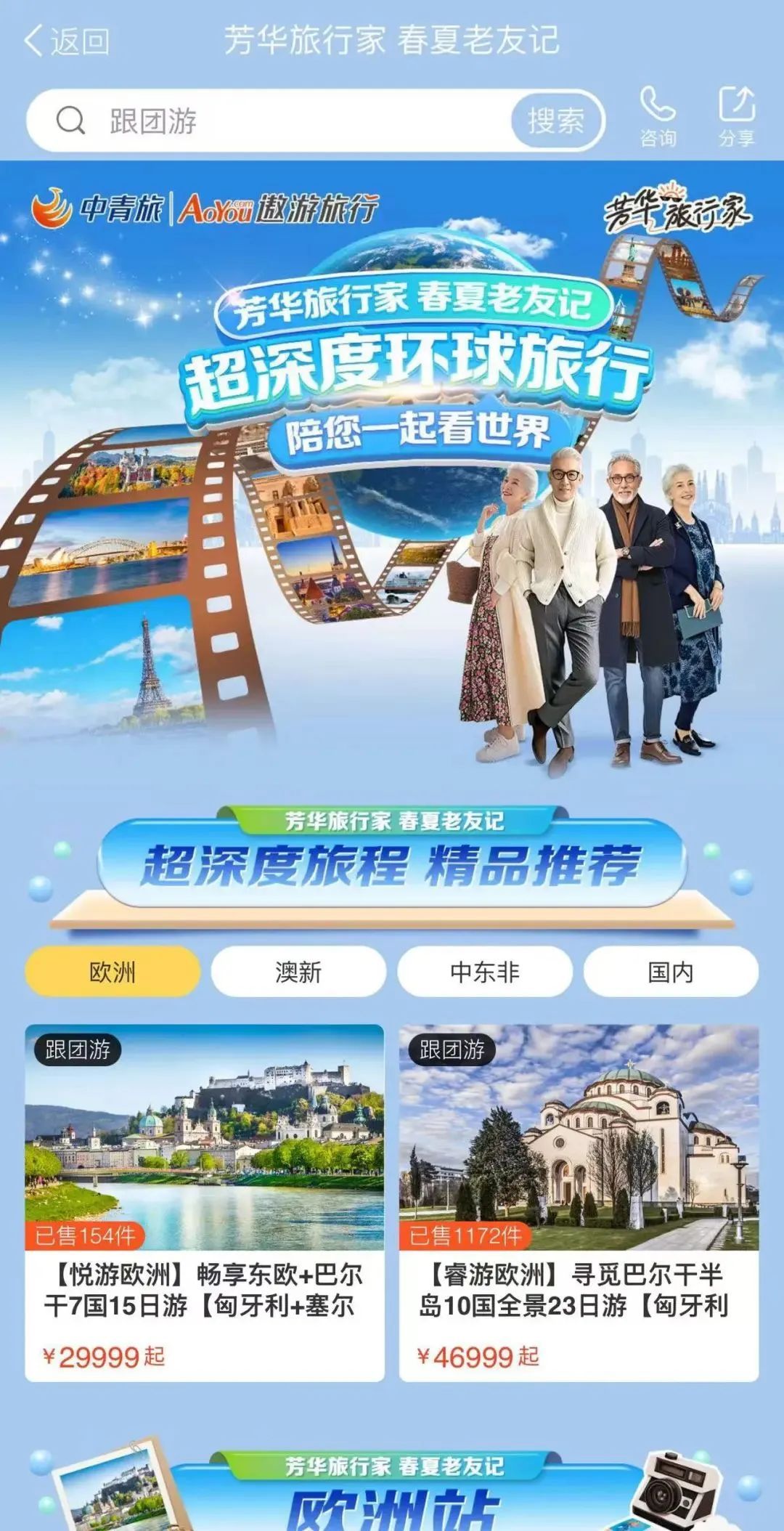 中青旅遨游旅行推出“芳华旅行家”系列产品/记者截图