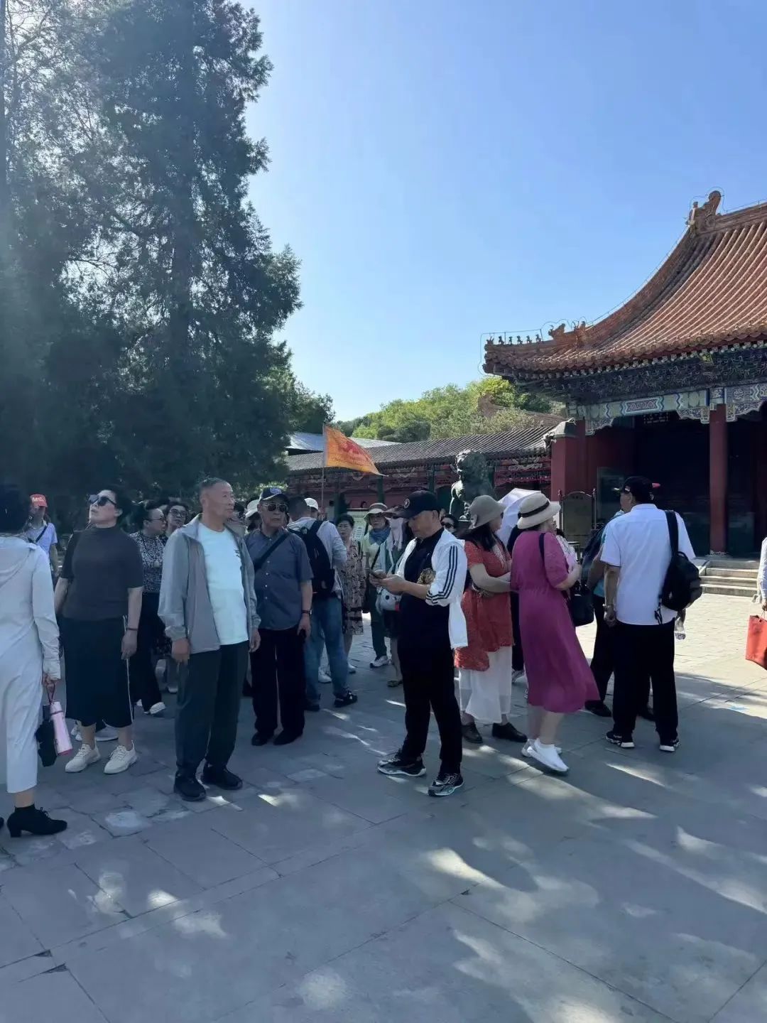 暑期未至,颐和园里已是游人如织,随处可见来自五湖四海的旅行团,团员们以中老年人和家庭出游为主。60岁的朱先生夫妻和女儿、外孙一起跟团从武汉来北京玩。“我们两口子加姑娘,外孙。一般都是家庭,一家(出游),我们年纪大的不会弄,都是我女儿在弄。”