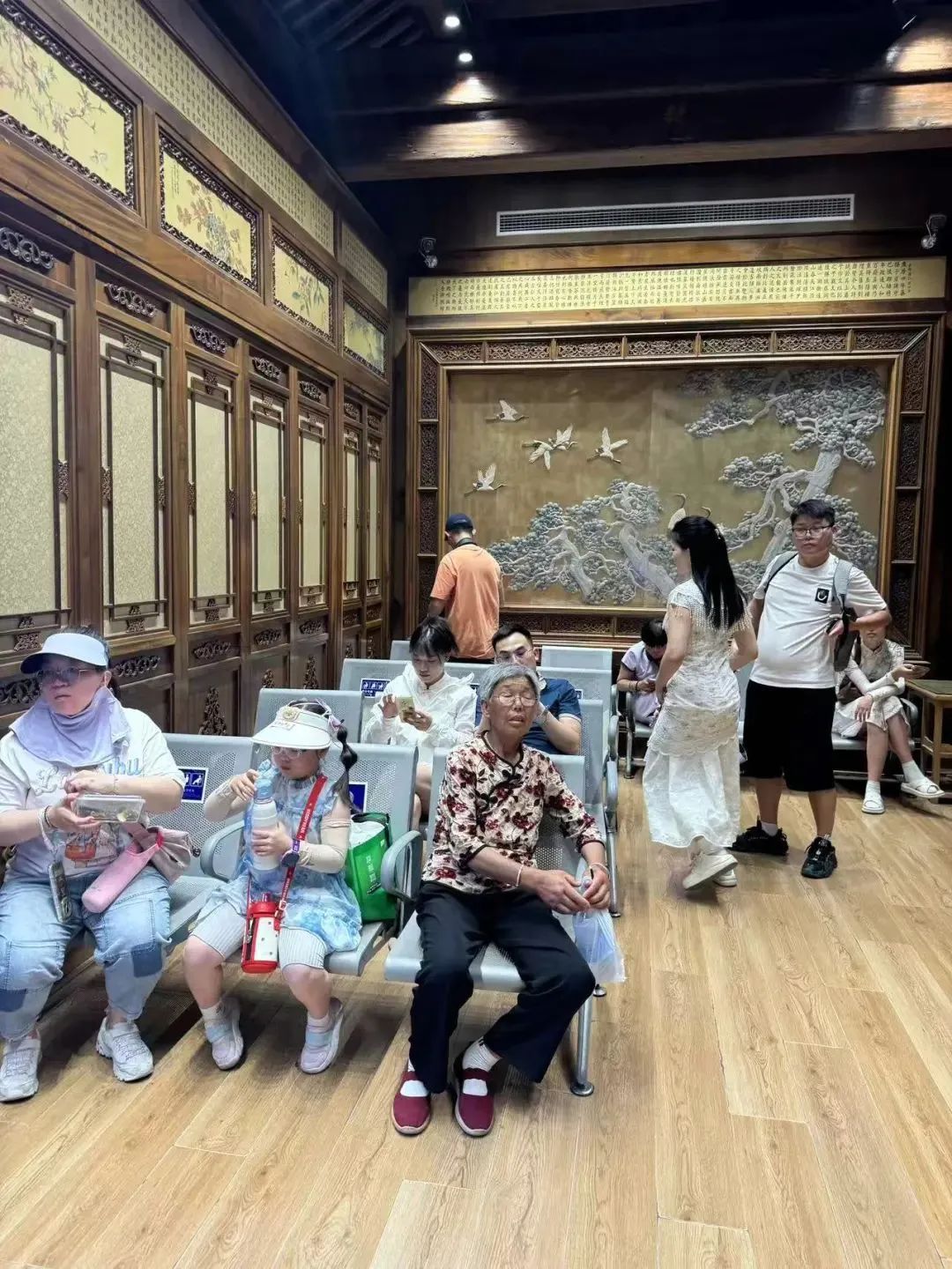 游客在颐和园游客服务中心休憩/记者拍摄