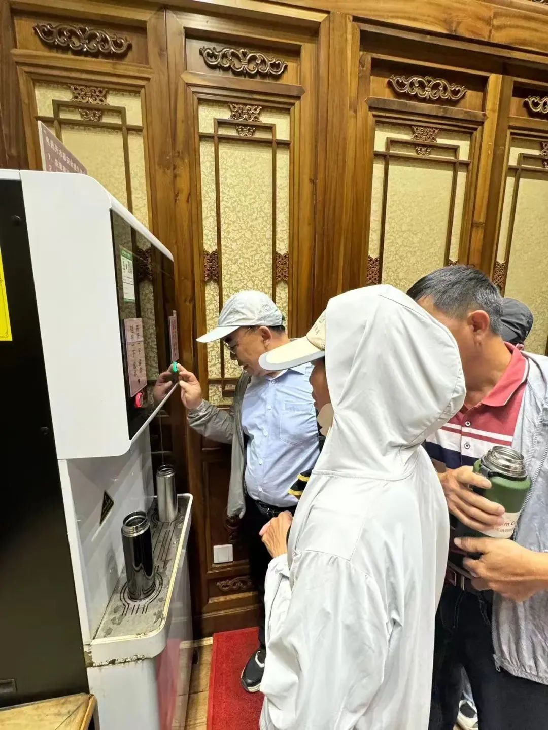 游客正在颐和园游客服务中心接热水/记者拍摄
