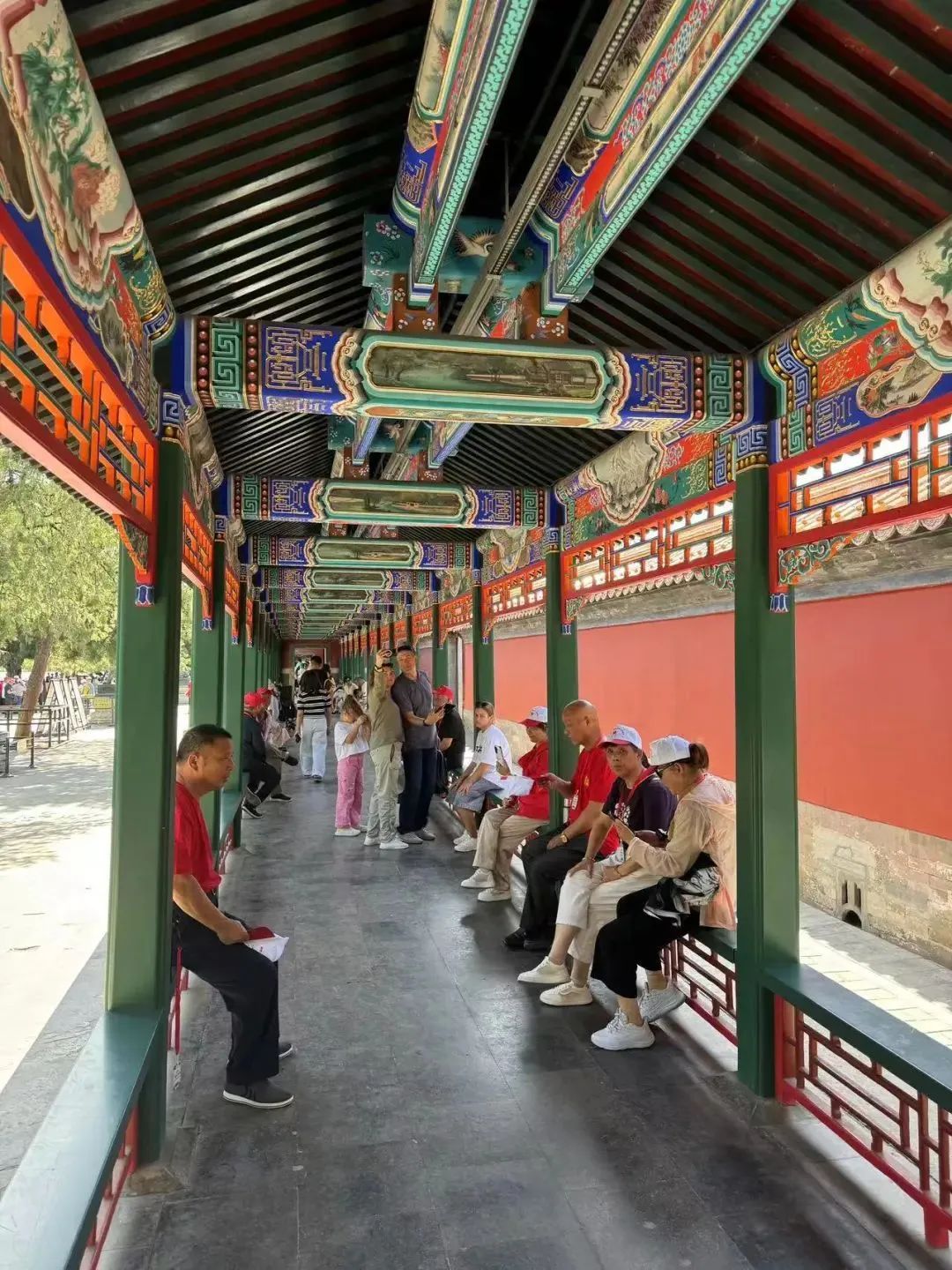 游客在长廊休憩/记者拍摄